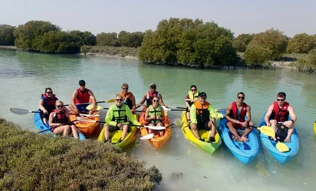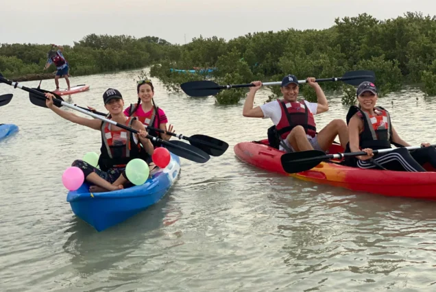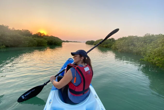 Located in Al Khor, Purple Island (also known locally as Al Thakira) is one of Qatar’s most unique natural sites. The shallow channels here are lined with mangrove trees, creating a habitat for fish, crabs, herons, and other wildlife. You’ll kayak at a relaxed pace, soaking in the views, stopping when you want, and gliding through calm waters that reflect the sky.